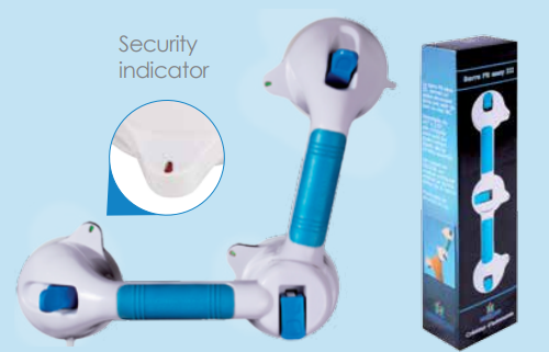 Diameter of the PVC suction cup: 95 mm, diameter of the grab bar: 35 mm made of polypropylene and non-skid soft material.