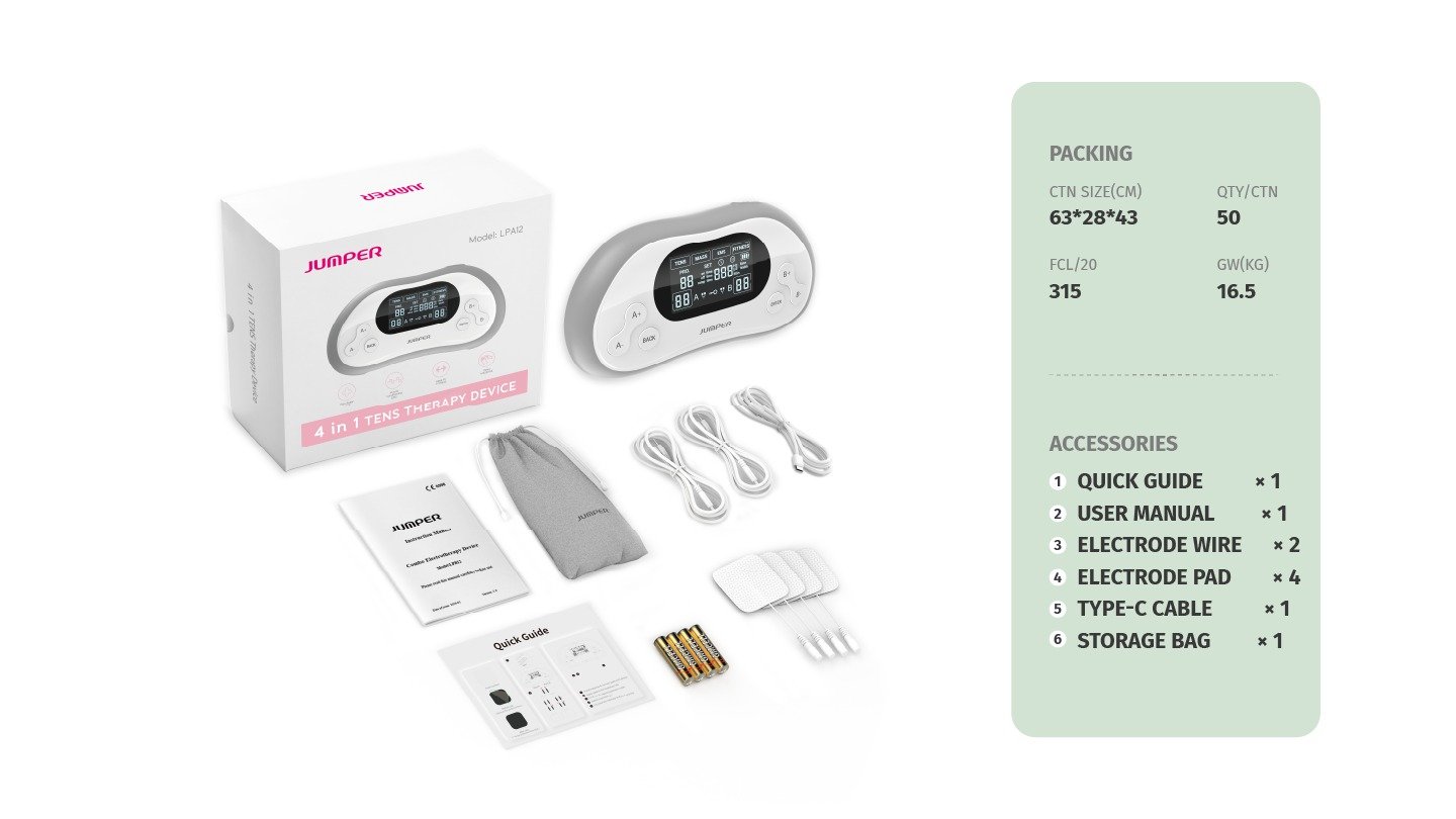 The Jumper LPB12 4 in 1 Combo TENS Therapy Device represents the next generation of recovery technology, offering an expanded suite of treatments in a single, professional-grade unit. As an upgraded multi-functional device, it is specifically optimized for those managing complex conditions like sciatica, chronic lower back pain, or recovery from a significant sports injury.